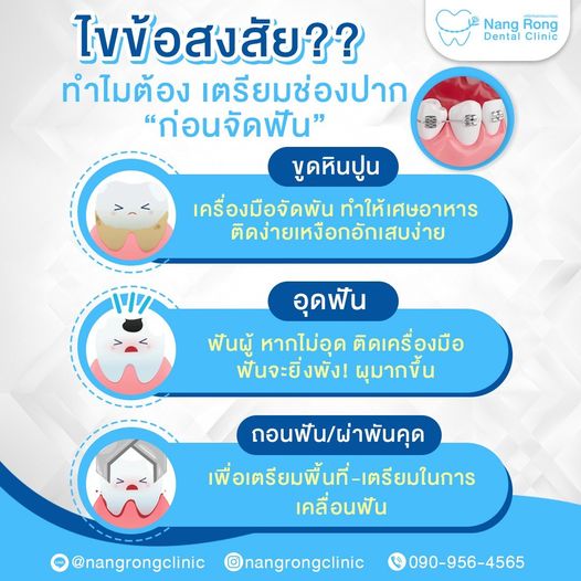 🦷 ขูดหินปูน - เครื่องมือจัดพัน ทำให้เศษอาหารติดง่ายเหงือกอักเสบง่าย 🦷 อุดฟัน - หากไม่อุด ติดเครื่องมือ ฟันจะยิ่งพัง! ผุมากขึ้น 🦷 ถอนฟัน/ผ่าฟันคุด - เพื่อเตรียมพื้นที่-เตรียมในการเคลื่อนฟัน